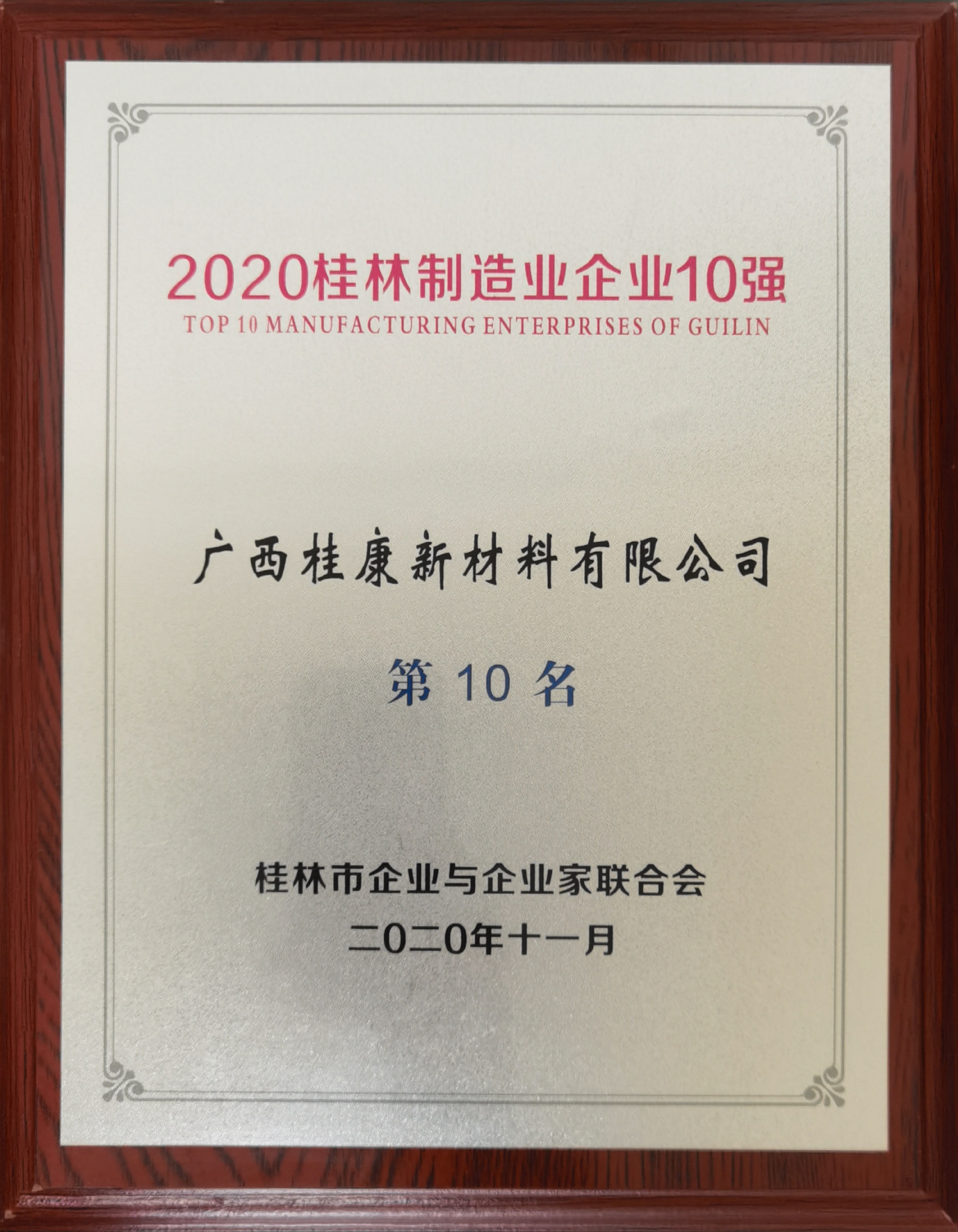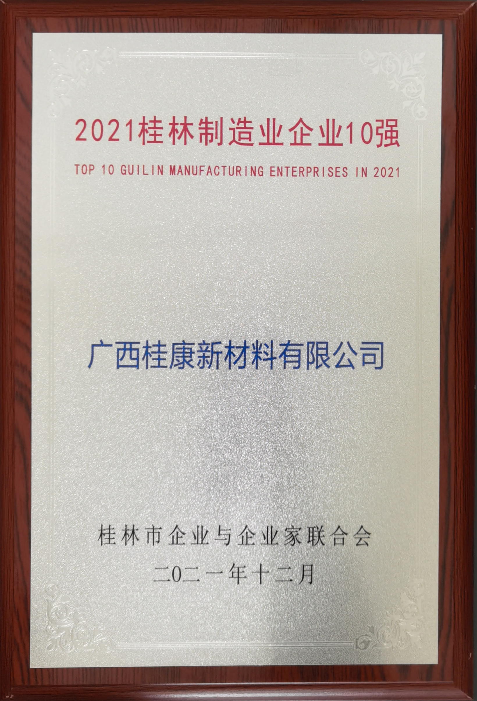 2021年桂林市企業(yè)與企業(yè)家聯(lián)合會桂林市制造業(yè)10強第7強