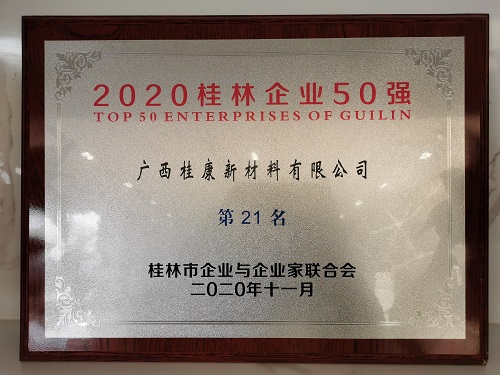2021年桂林市企業(yè)與企業(yè)家聯(lián)合會桂林市企業(yè)50強第16強